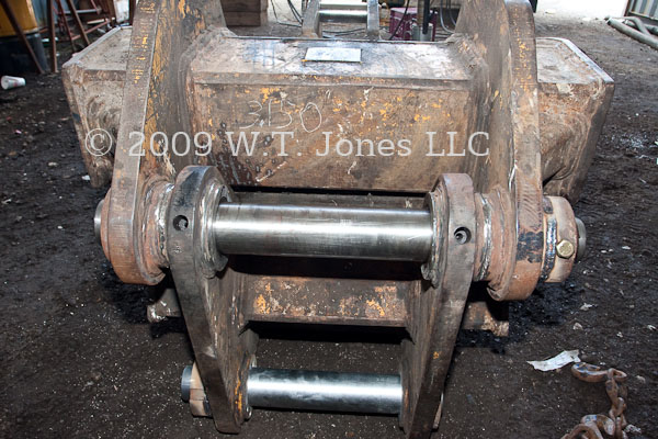The rotating side will get modified to accept regular Caterpillar (Cat) bearing that you would normally find used in the machines stick nose or H-link to rotate the bucket. Simple, readily available & relatively inexpensive compared to custom options.
